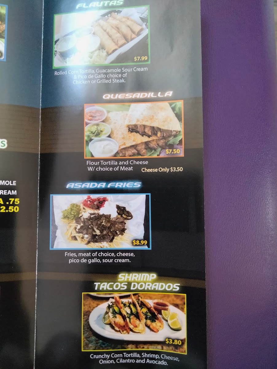 Corn tortillas guacamole sour cream Fresh Pico de Gallo Choice of chicken or grilled steak