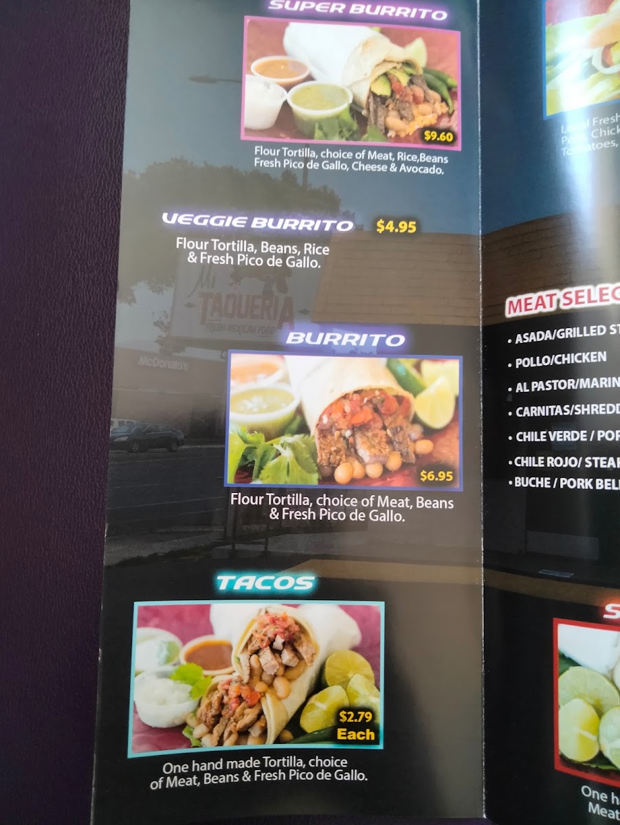 Flour Tortillas Choice of Asada,Carnitas,Chili Verde & Rojo,Chicken,Buche,Al Pastor Pico de Gallo,Rice,Beans,Cheese & Avacado